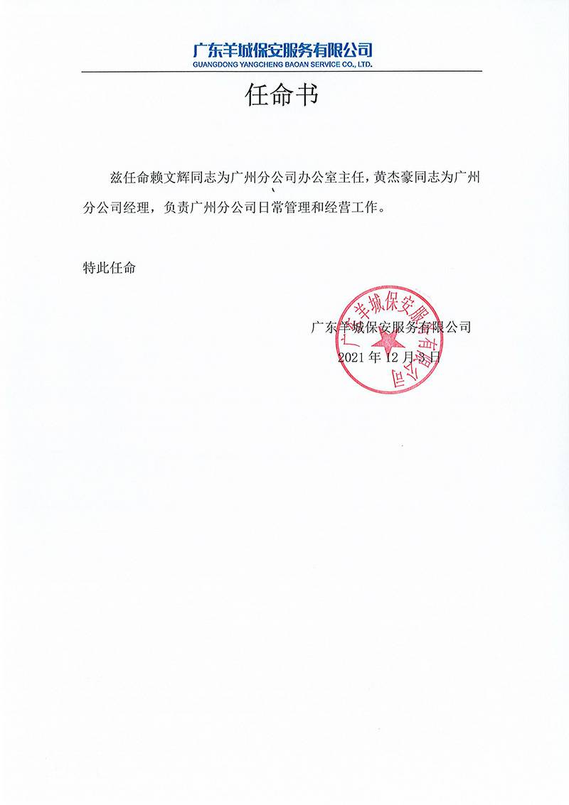 九洲官方网站-九洲jiuzhou(中国)关于黄杰豪与赖文辉的任命书正式通知